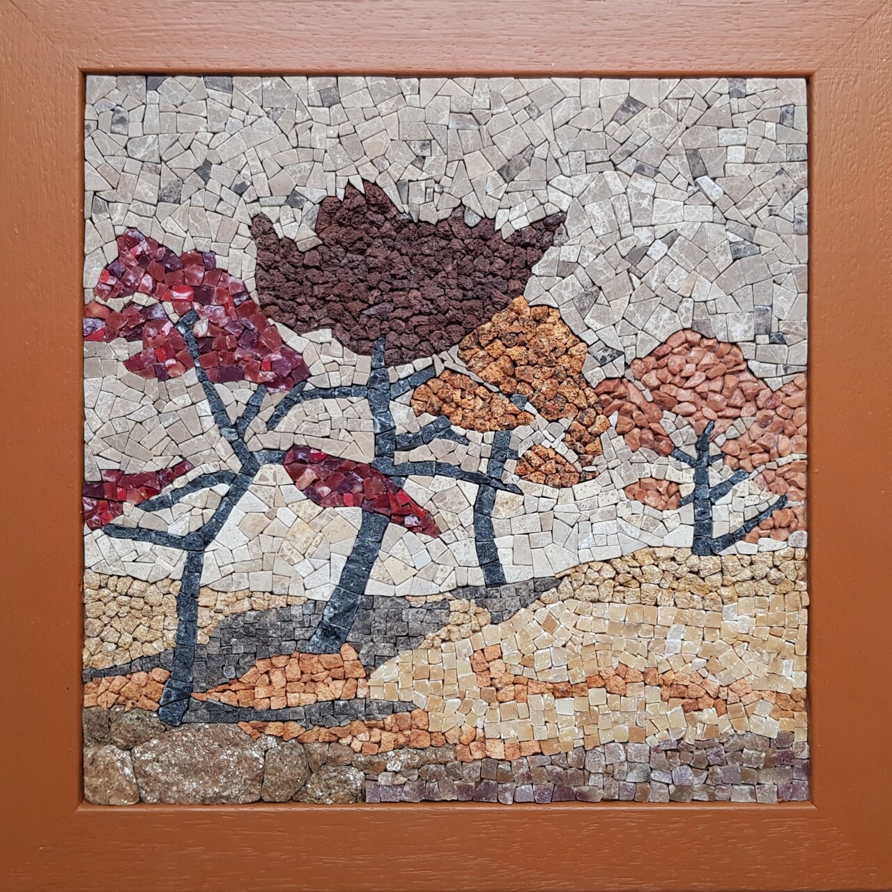 Puis j’ai découvert la mosaïque contemporaine, qui m’a passionnée, notamment en faisant des stages avec Malika Ameur. Actuellement l’essentiel de mon travail découle de mes découvertes dans ce domaine.