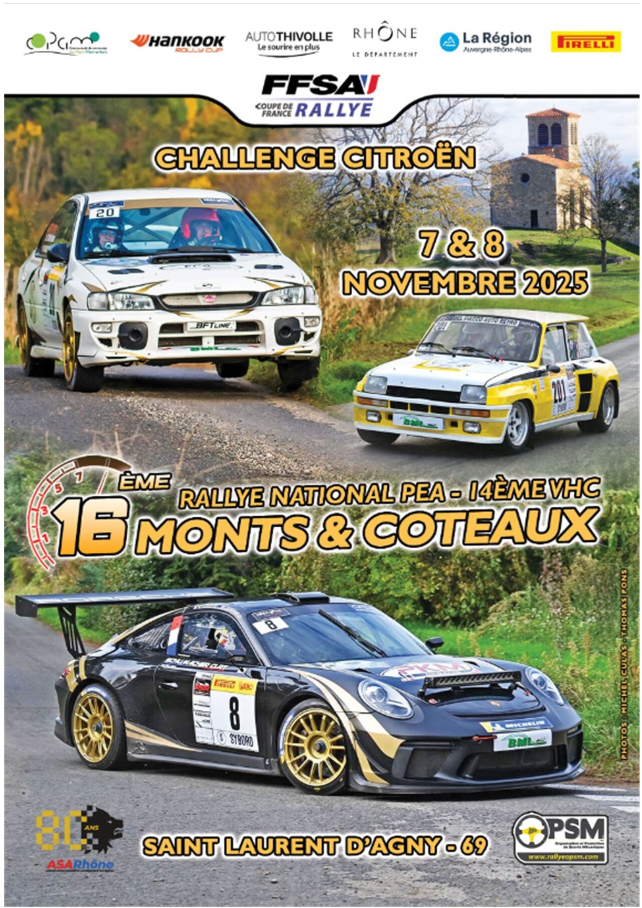 "Rallye Monts et Coteaux" sur les routes de coteaux et monts du Lyonnais : rallye qui se déroulent sur deux jours en 8 spéciales.